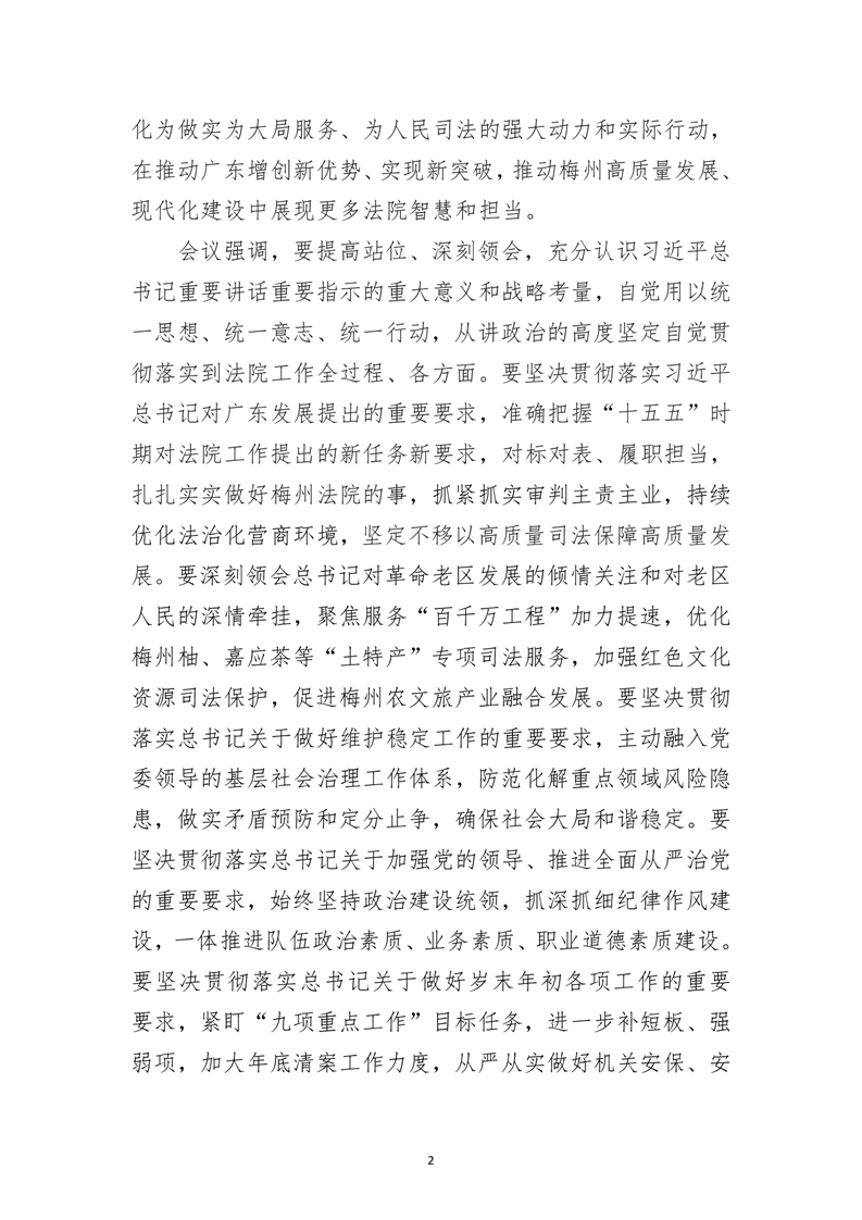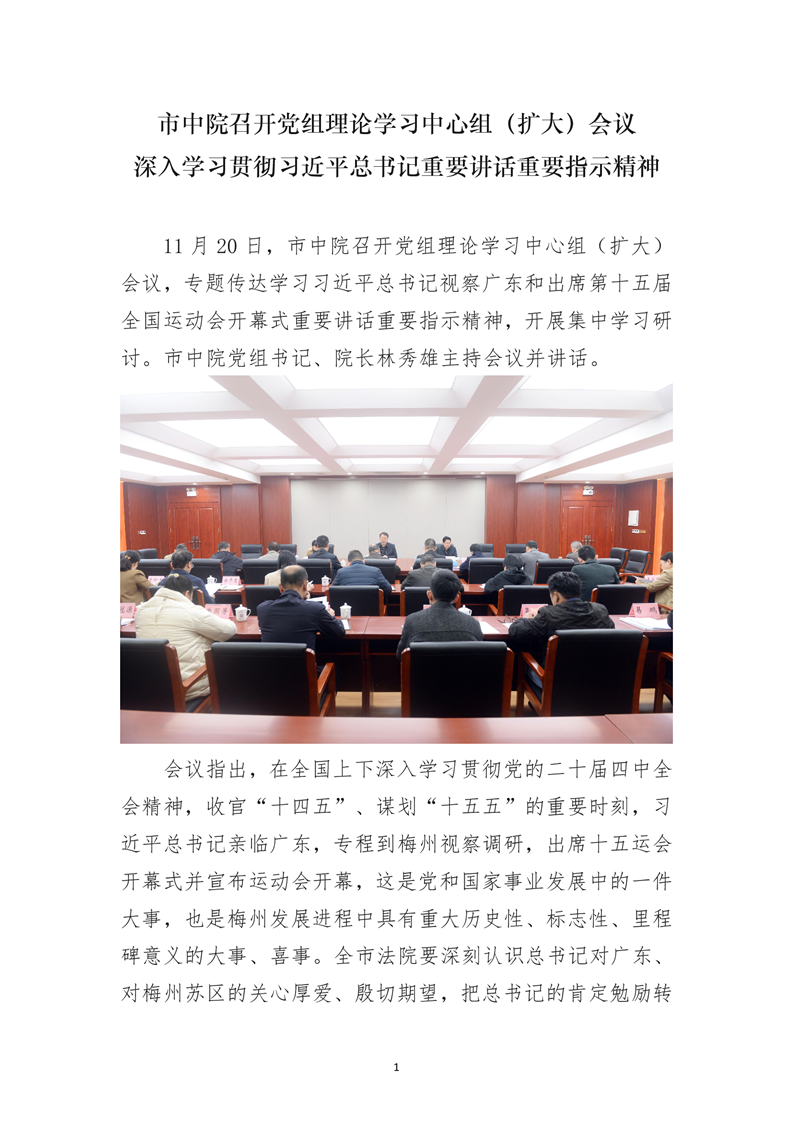 市中院召开党组会专题传达学习习近平总书记视察广东和出席第十五届全国运动会开幕式重要讲话重要指示精神