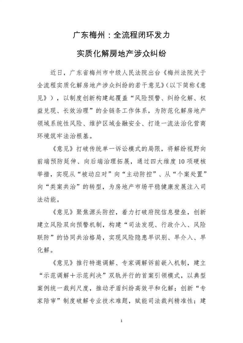 广东梅州:全流程闭环发力 实质化解房地产涉众纠纷
